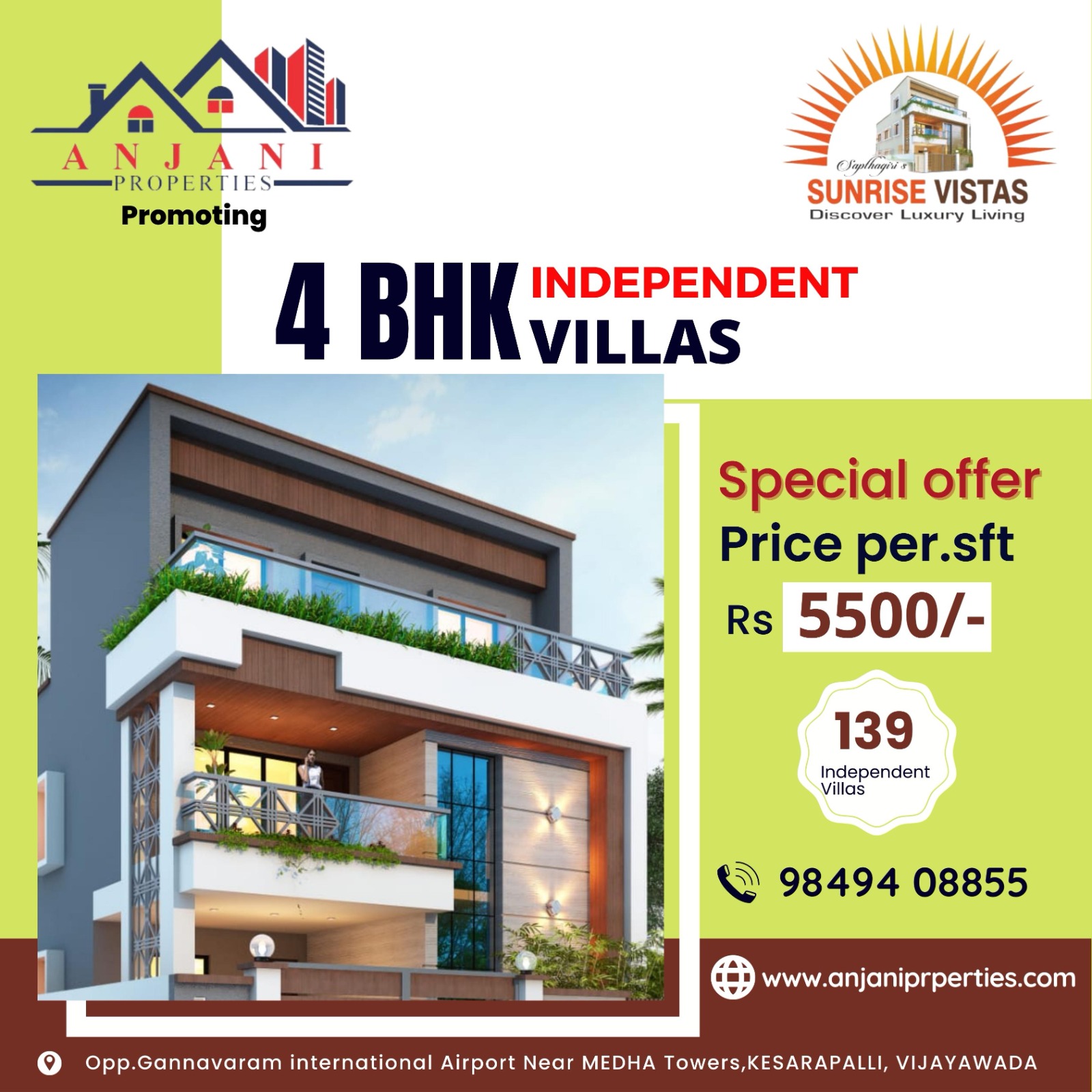 Anjani Properties focuses on building aesthetically and structurally remarkable projects. A full service landholding development company that offers the best commercial properties and residential properties in Vijayawada. Anjani Properties has changed the outlook of modern Vijayawada into a global city by being responsible for several landmark developments. With a vast portfolio of residential projects, Anjani Properties has emerged as South India’s most trusted developers. Whether it’s for a prime residential property or a plotted development, Anjani Properties has the most fitting options for your dream home. With an industry experience of over 10 years, Anjani Properties is the largest land owner in Vijayawada.